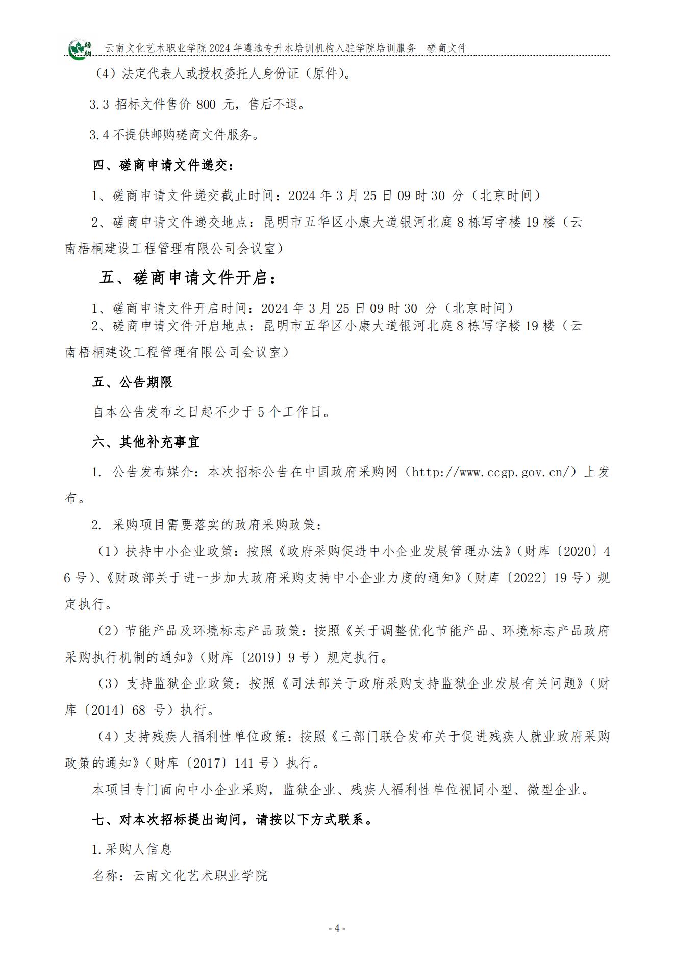 云南文化艺术职业学院2024年遴选专升本培训机构入驻学校培训服务竞争性磋商